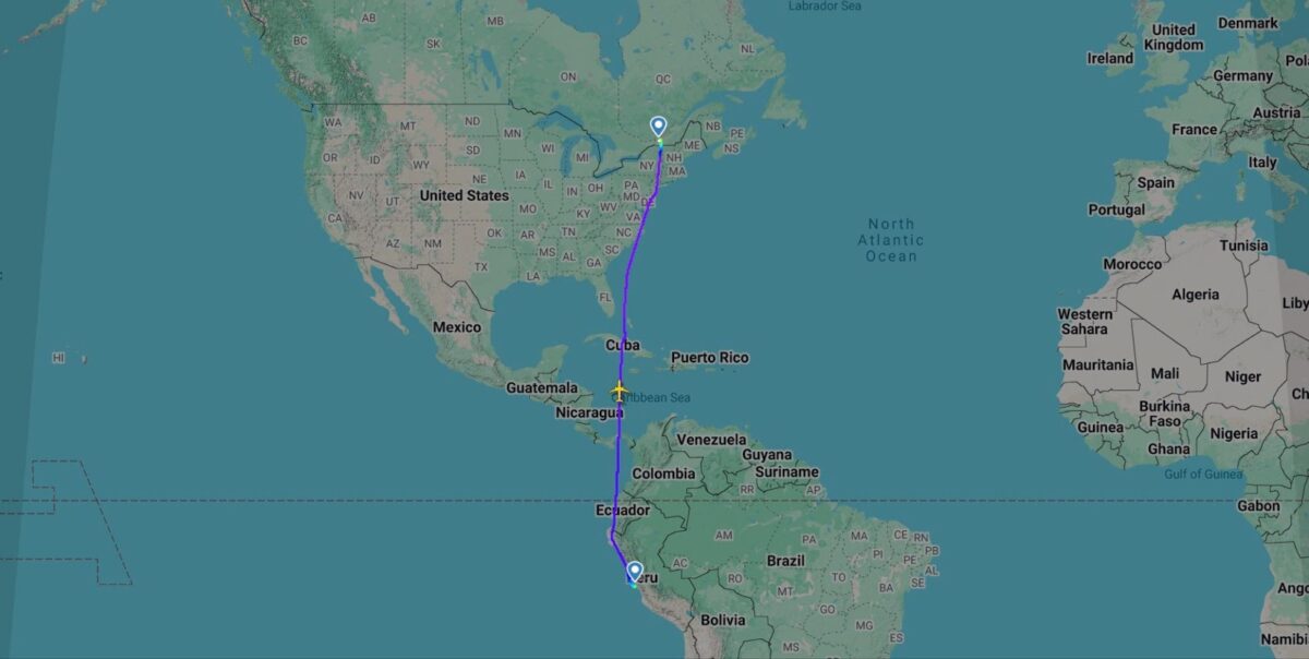 The second of three Transat routes in the top 10 longest narrowbody flights also connects to Lima in Peru, but this time from Air Transat’s focus city at Toronto Pearson (YYZ). Covering 3,344 nautical miles, it’s the seventh longest narrowbody flight in the summer schedule right now.