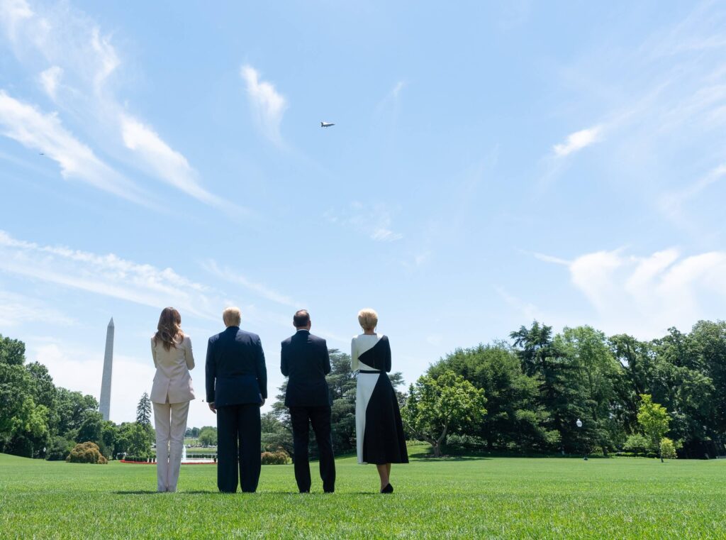 The agreement was celebrated with a low fly pass of an F-35 fighter jet over the White House in Washington, before the eyes of the two leaders and their spouses.