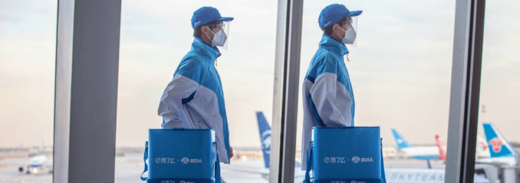 As of 2020, China’s online food delivery market generates the equivalent of 45 billion USD yearly — nearly double that of the US. More than 400 million people in China use food delivery services. During the COVID-19 period, food delivery service became even more important than ever. And now, the service is not only available in the city, but also inside the airport.