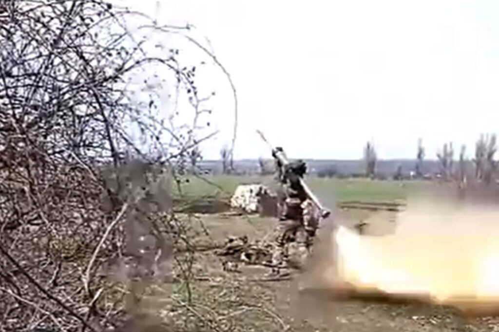In the video, posted on numerous social media channels affiliated with the Ukrainian military, a soldier is shown firing a missile, followed by cheering of his comrades as an explosion is heard in the background.