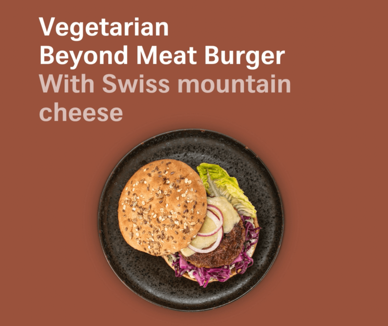 One of the specialties that SWISS developed for its longer European flights is a vegetarian Beyond Meat burger with plant-based meat and Swiss mountain cheese.