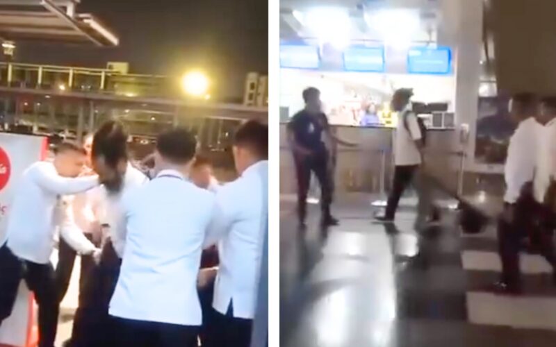 Bennet was captured on video throwing punches at one of the uniformed airport security staff.