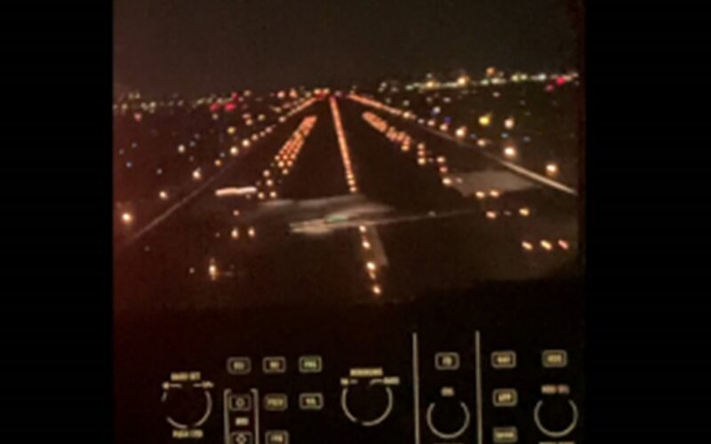 In a photo released by the NTSB taken from the Embraer cockpit, the LearJet can be seen in the near distance taking off in front of the landing plane.