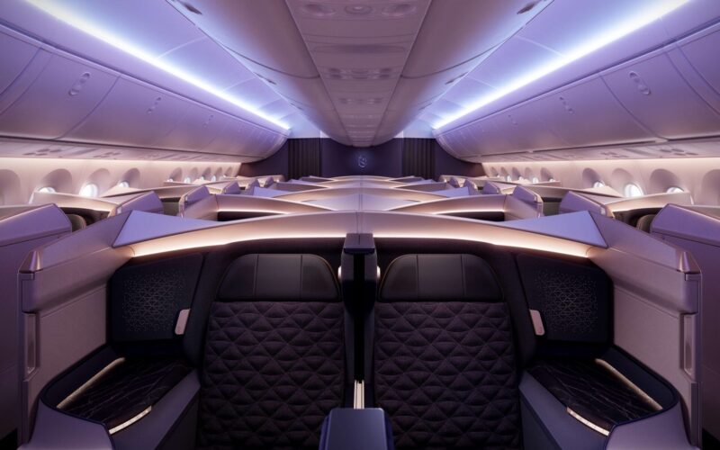 There will be four Business Elite seats, with a double bed in the center front, and 24 in Business both in a 1-2-1 fully flat-bed layout using the Safran Unity design.
