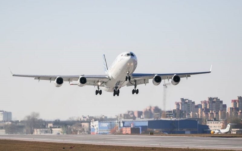 “The Il-96-400M wide-body long-range airplane has completed its first flight,” the Russian government said. “Stability and controllability of the aircraft, operability of systems, the powerplant and landing approach radio equipment were tested during the flight.”