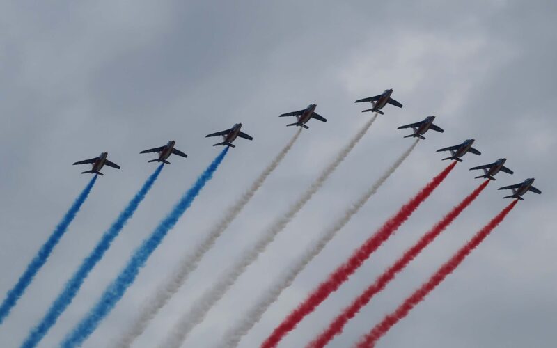 The Patrouille de France is the French Air and Space Force’s precision aerobatic demonstration team, founded in 1953. It comprises nine highly skilled pilots, who frequently perform at national events and international airshows. The French Ministry of the Armed Forces has yet to confirm whether upcoming appearances by the Patrouille de France will be postponed.