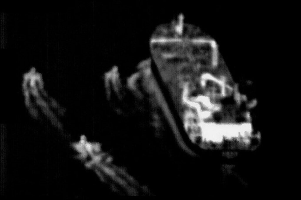 The civilian crew reported that three fast-attack boats with armed personnel approached and followed the ship at a close distance.